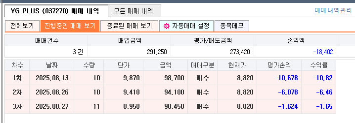 | 리스플릿 존버종목 탈출기 2주 경과 후기, 매직스플릿 자동매매 (8) | 2025.08.28 |