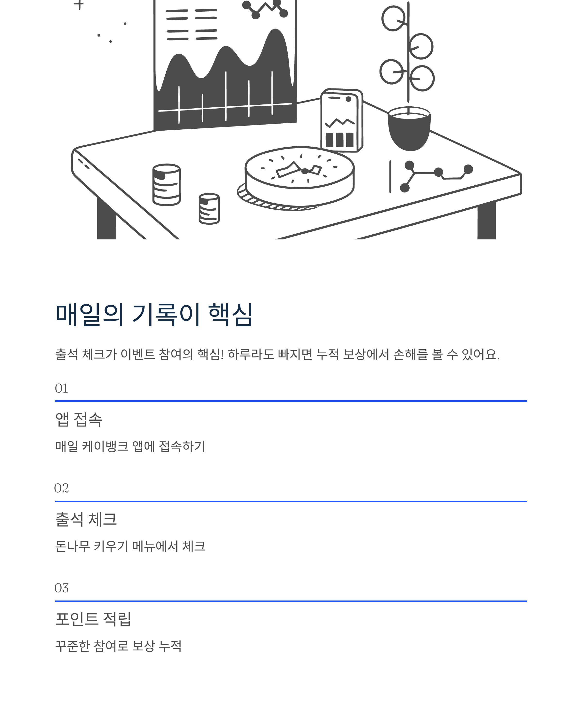 | 매일 출석 체크 | 포인트 적립 |