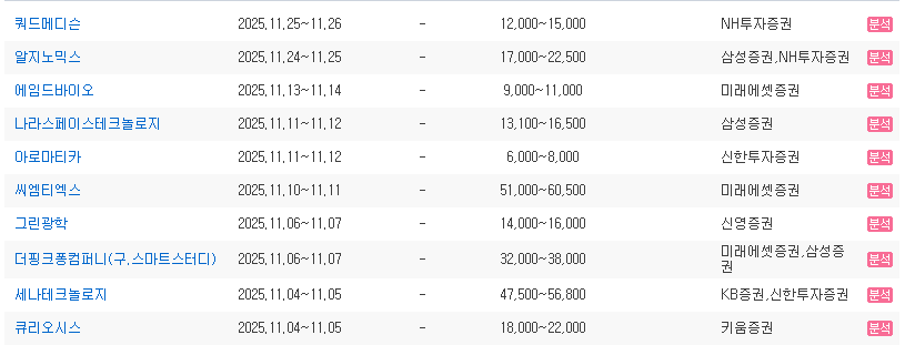 2025.10.10 - [주식(자동매매, 공모주)] - 공모주 10월 청약일정 및 종목 분석, AI부터 광학까지 다채롭게