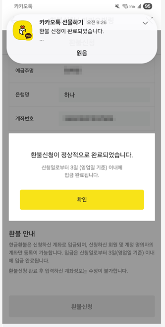 - 환급 신청 완료!