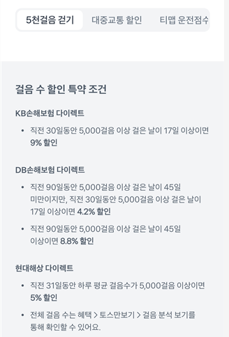| 직전 90일 중 5,000보 이상 걸은 날 17일 이상 | 4.2% 할인 |