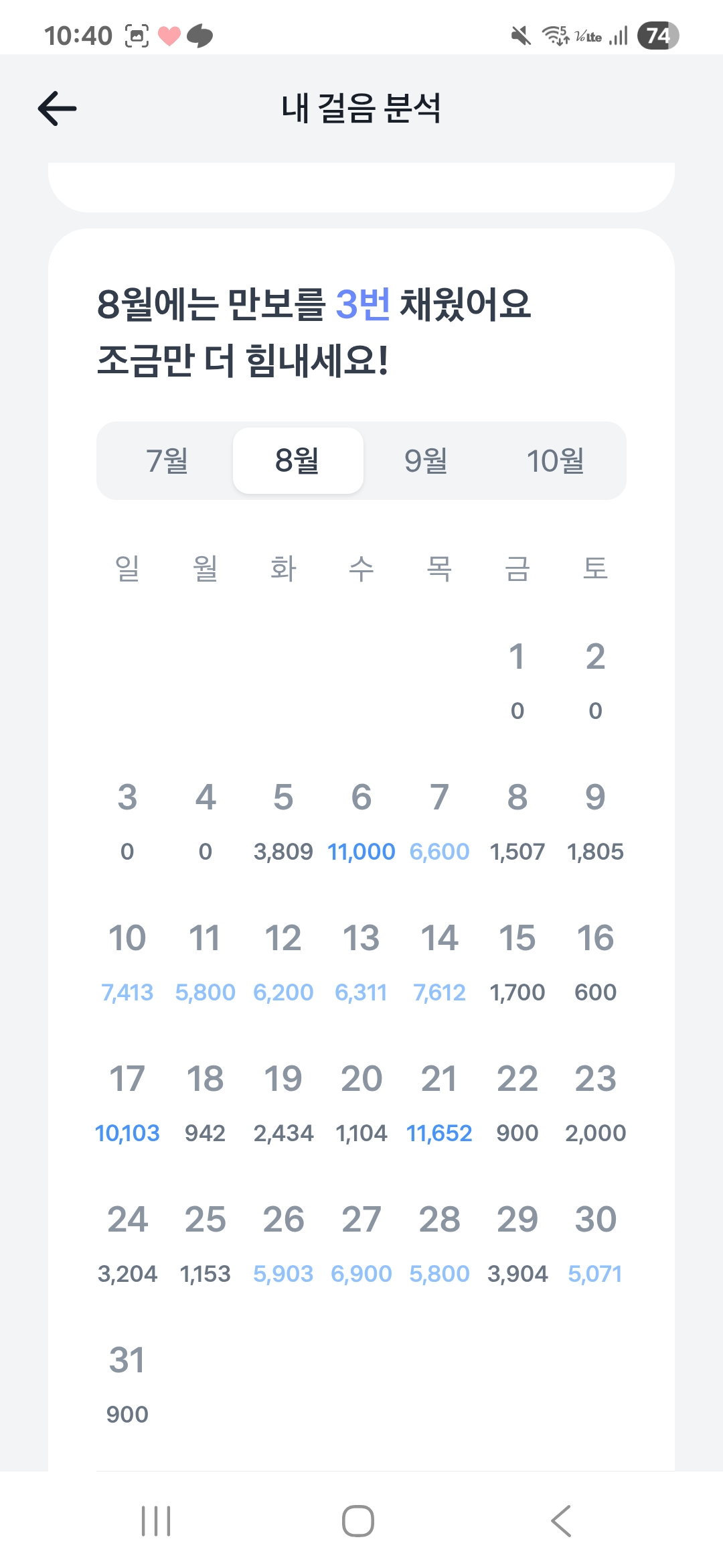 평일에 5,000보를 걷지 못한 날이 있으면 주말에 만회했어요.