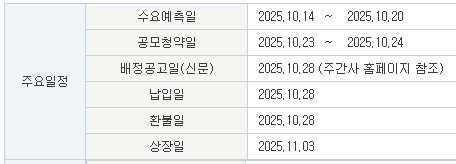 2025.10.10 - [주식(자동매매, 공모주)] - 공모주 10월 청약일정 및 종목 분석, AI부터 광학까지 다채롭게