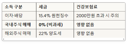 💡 중요: 주식 매매로 번 돈은 금융소득 아님!